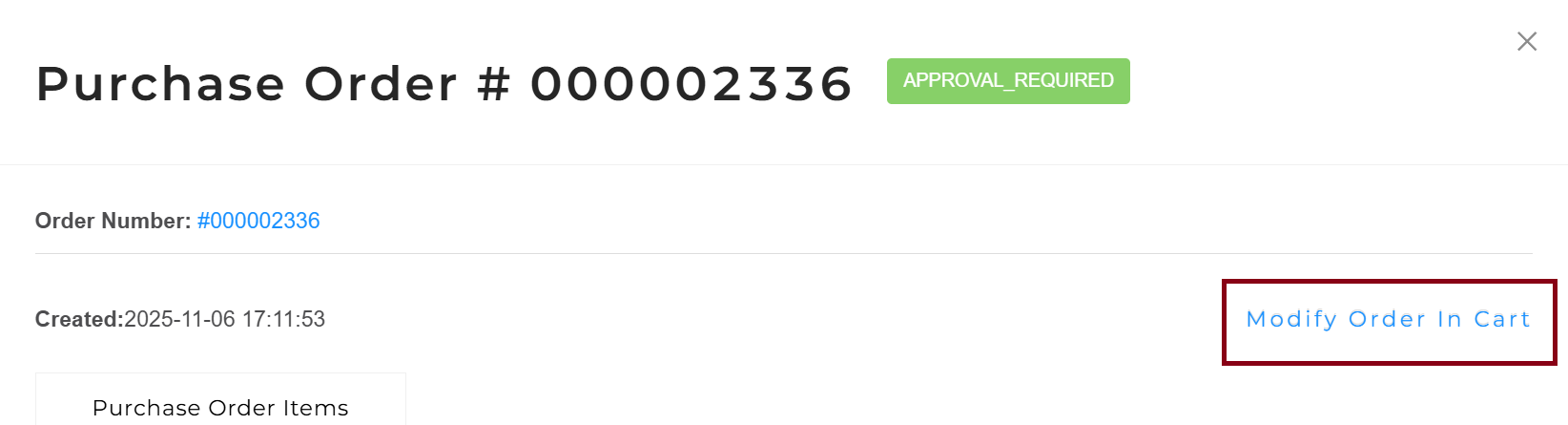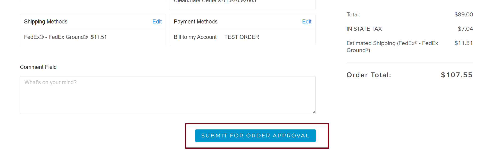 - Limited User will log in and place their order through the cart as normal. Their only option will be Submit For Order Approval.